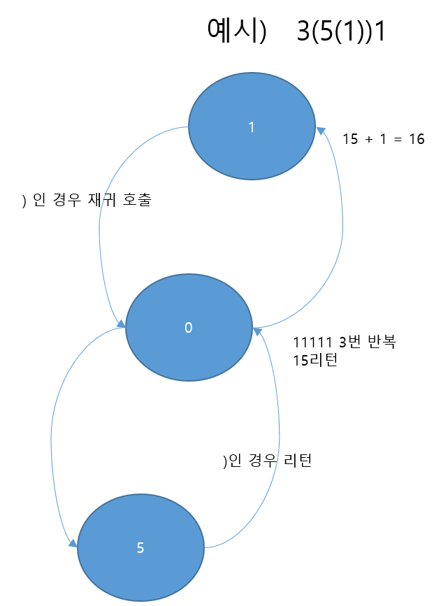 2) 맨 끝에서 부터 pop을 하며 (, ), 숫자 경우에 따라 조건을 대입