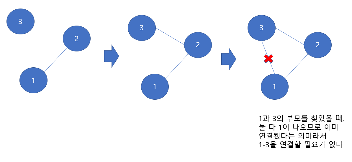 두 노드의 부모가 일치하면 연결됐다는 의미