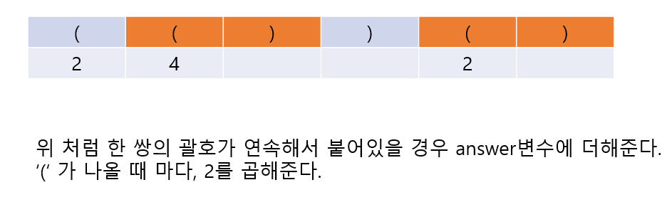 - 여는괄호 ( [ 와 닫히는괄호 ) ]가 연속해서 붙어있는 경우에 합을 계산.