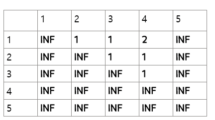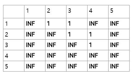 2차원 배열을 INF로 초기화 -> 플로이드 와샬 -> 인풋 쌍을 보면서 출력