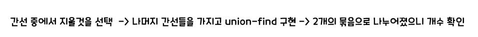 처음 접근법은 2가지 묶음으로 나눠야 합니다. 그러기 위해서 저는 Union-find를 사용했습니다.