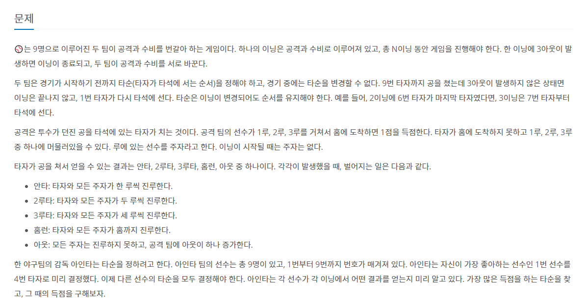 타자의 순서를 정해줘야 한다. 그러기 위해서 순열을 이용한다.