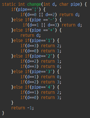 현재 좌표에서 가스관의 종류별로 방향을 바꿔줘야 한다.
