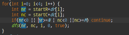 if(nr<0 || nr>=N | nc<0 ||nc>=M) continue;