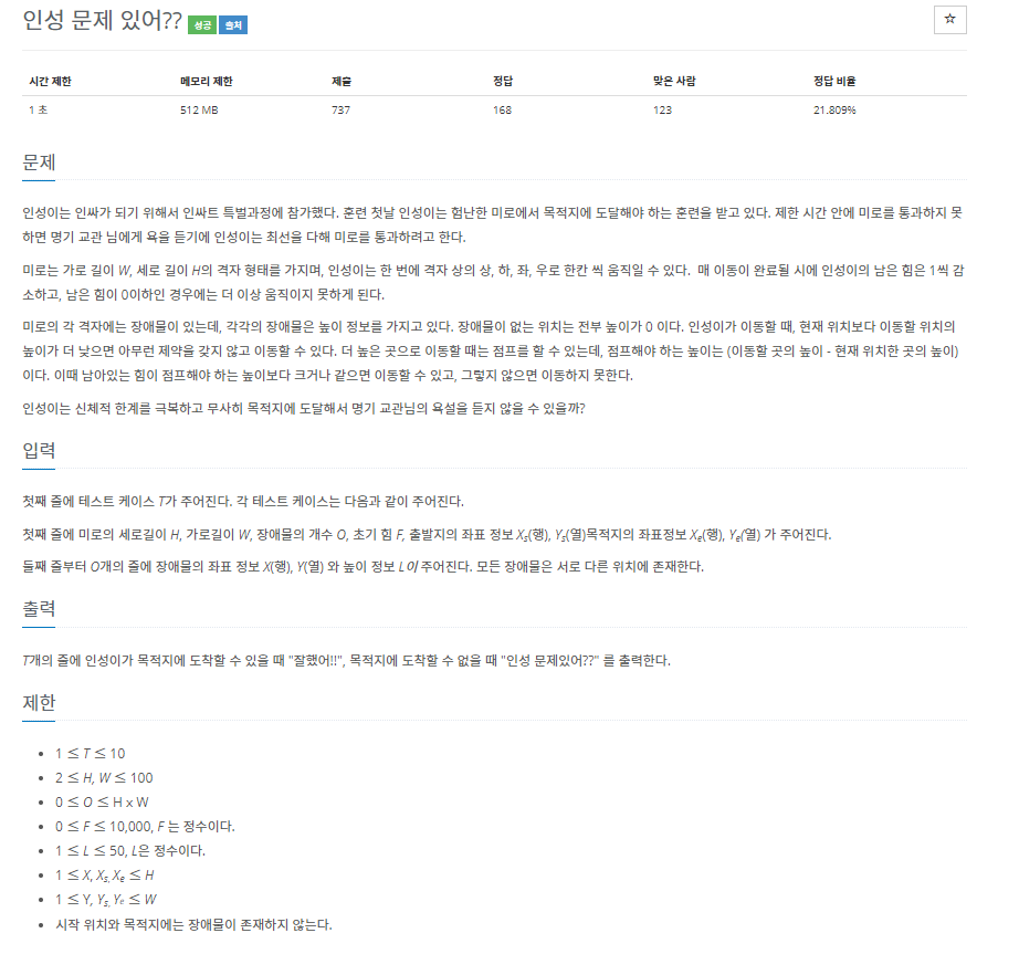 비슷한 문제는 백준 1600번이다.